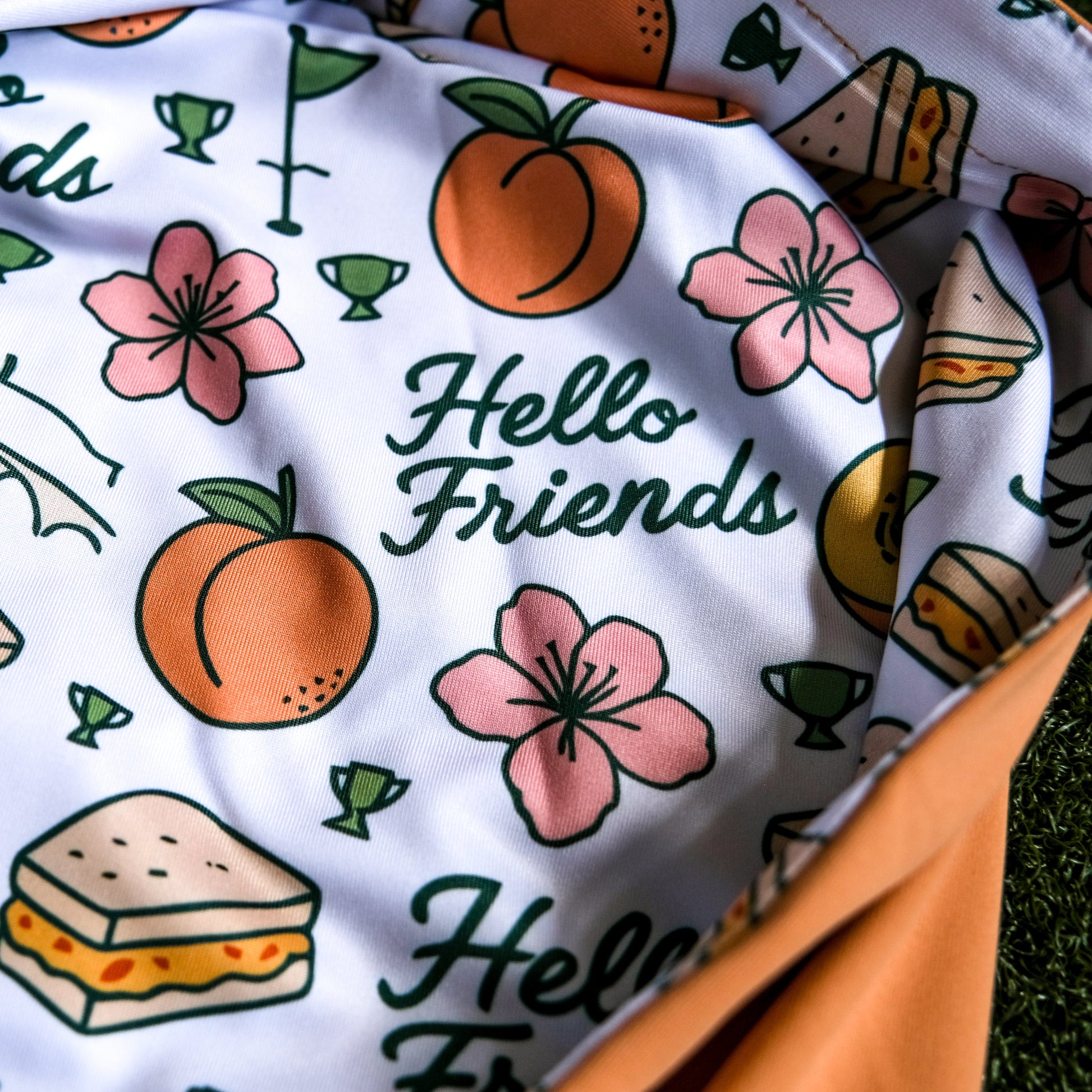 Wrapped in a soft peach exterior, this hoodie keeps things clean and classic on the outside. Inside the hood, a custom print comes to life with playful icons inspired by springtime in Georgia — blossoms, peaches, clubhouse details, and subtle storytelling woven into every inch. It’s designed for those who understand that golf isn’t just a game — it’s a ritual.