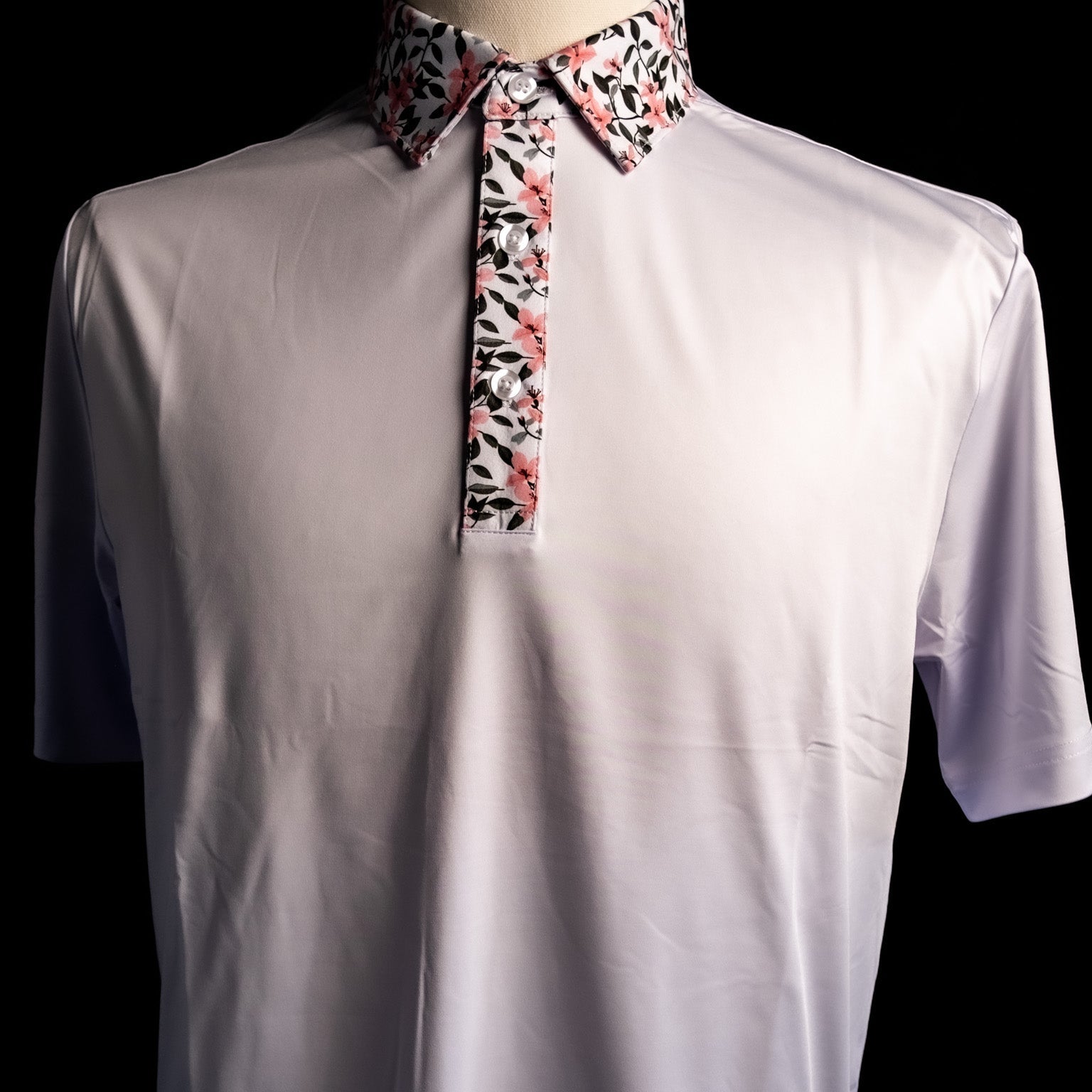 This high-performance golf polo features an elegant print inspired by Augusta’s famed Magnolia Lane. Its clean white base and subtle design accents pay homage to tradition while keeping your look fresh and modern.