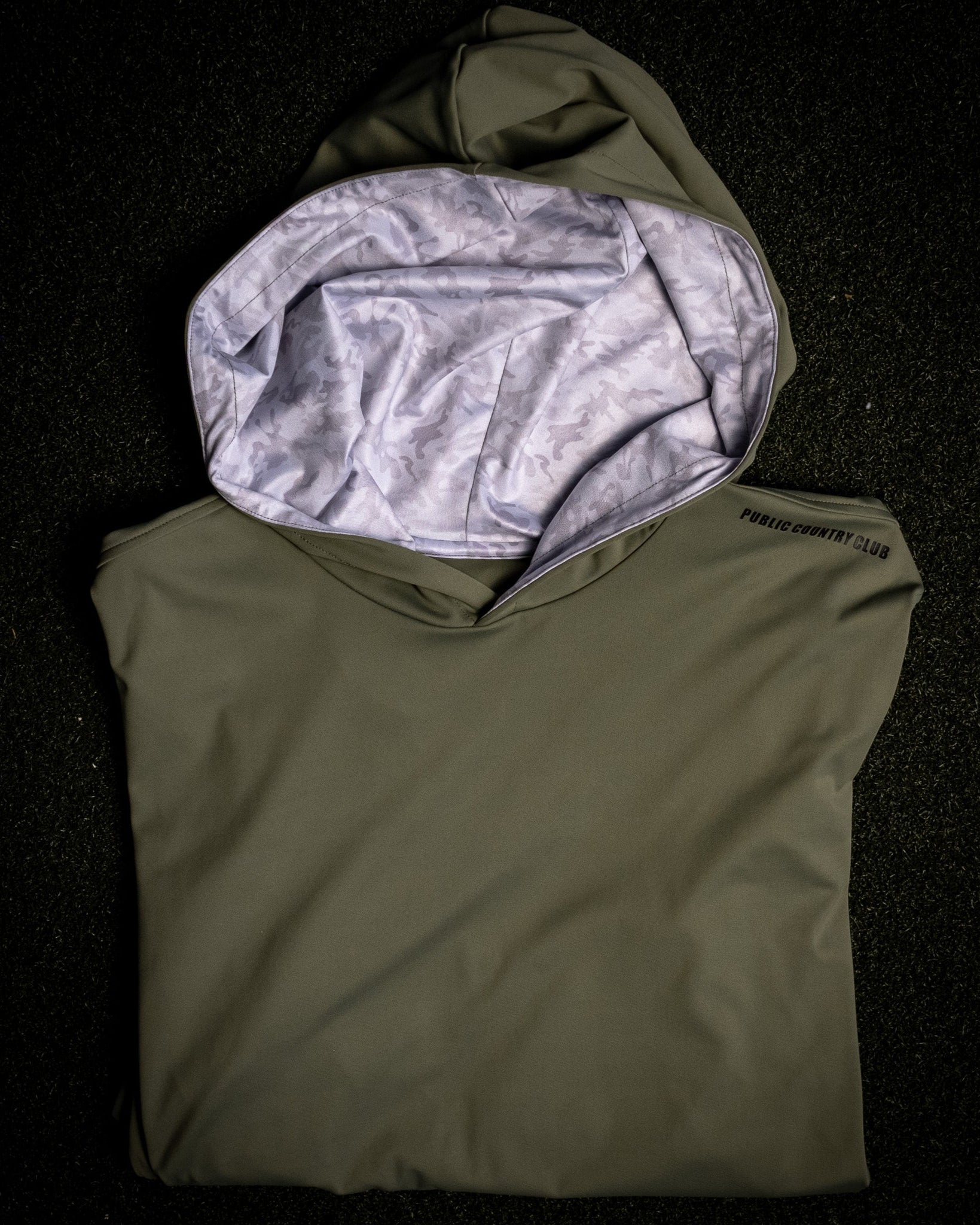 Introducing the Lost Ball Hoodie, part of Public Country Club’s On-Course Collection. This hoodie is designed to help you stand out on the course with its unique camo-inspired print and versatile sage green accents. Combining modern style with technical features, it’s the perfect blend of performance and personality.