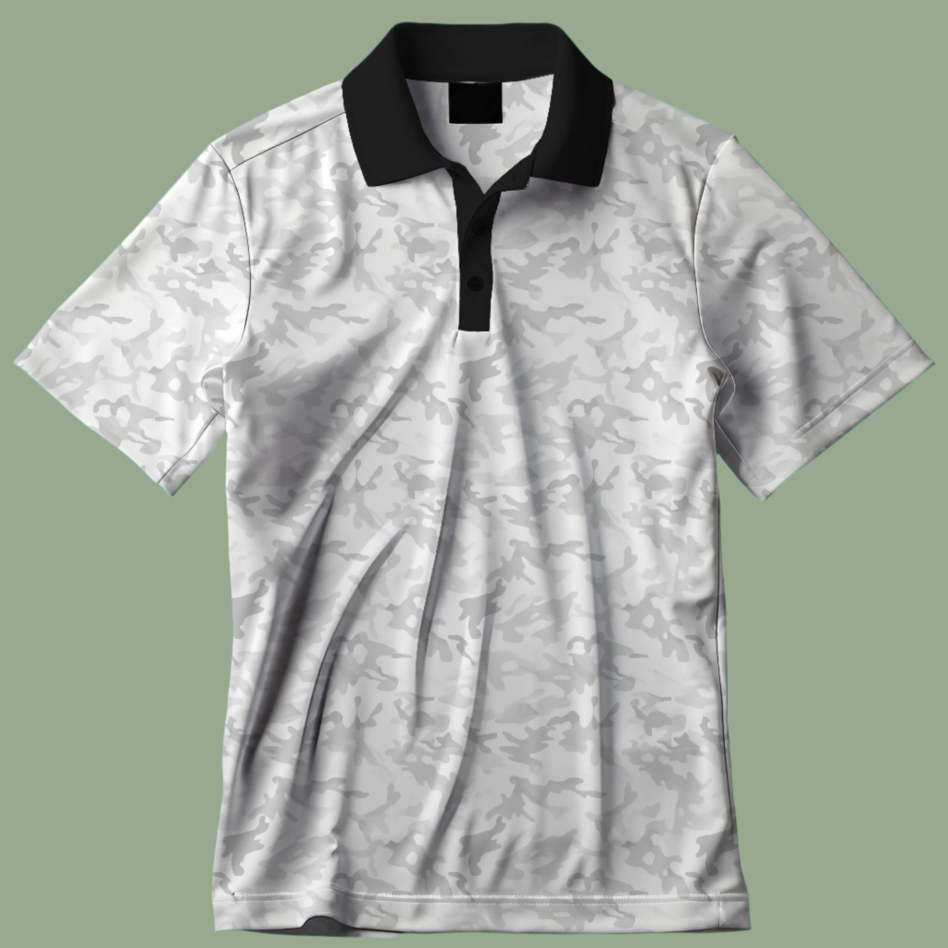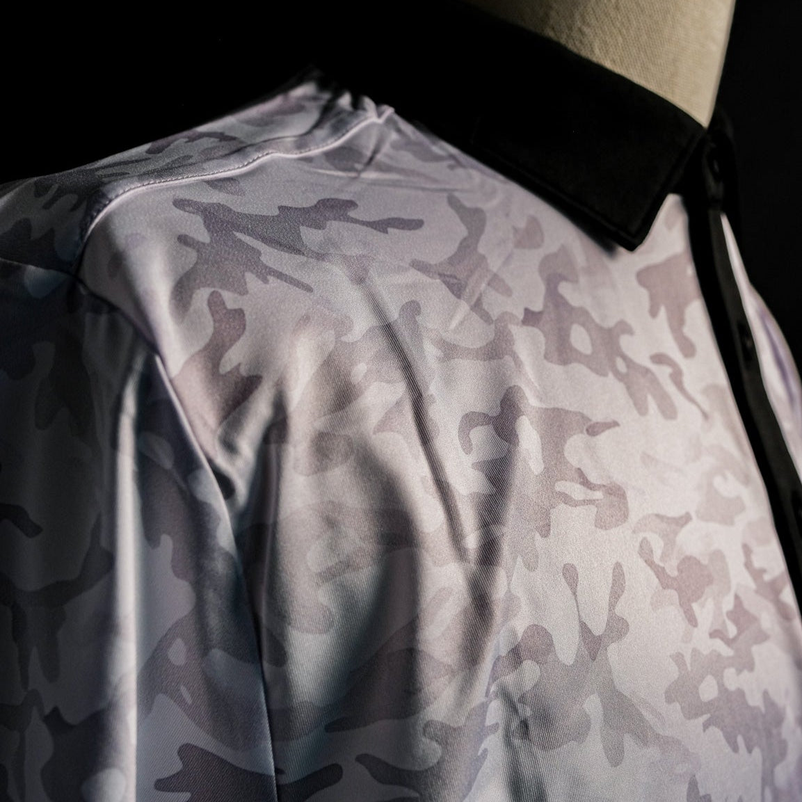 Featuring a contemporary camo golf print across the entire polo, this piece offers a timeless look suitable for any season. The minimal logo adds a subtle touch of sophistication, making it perfect for your next round or a casual outing.